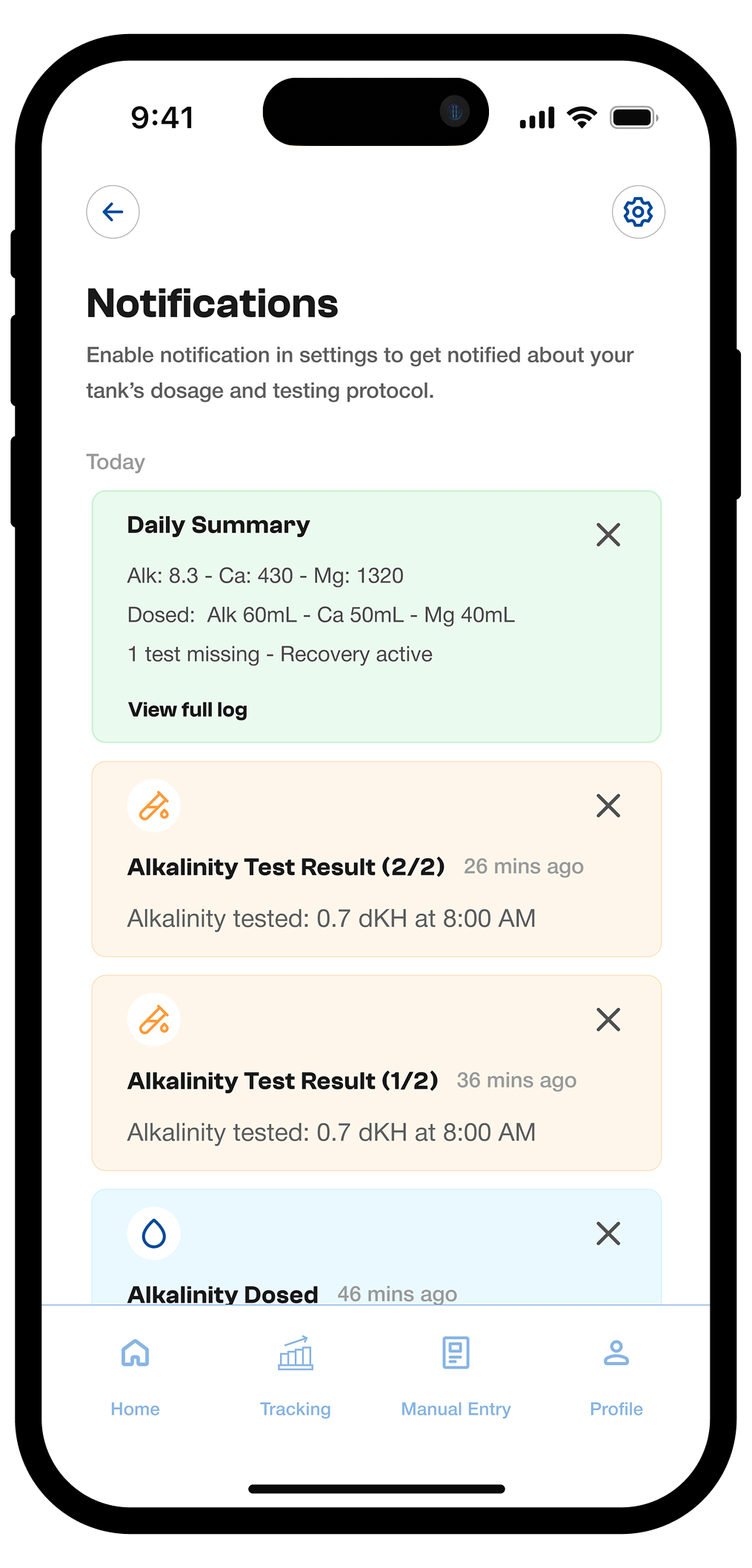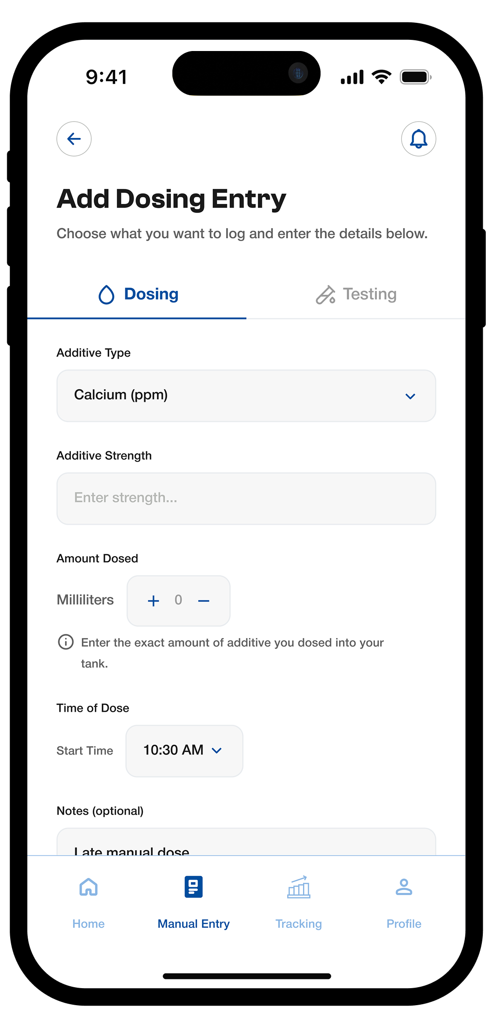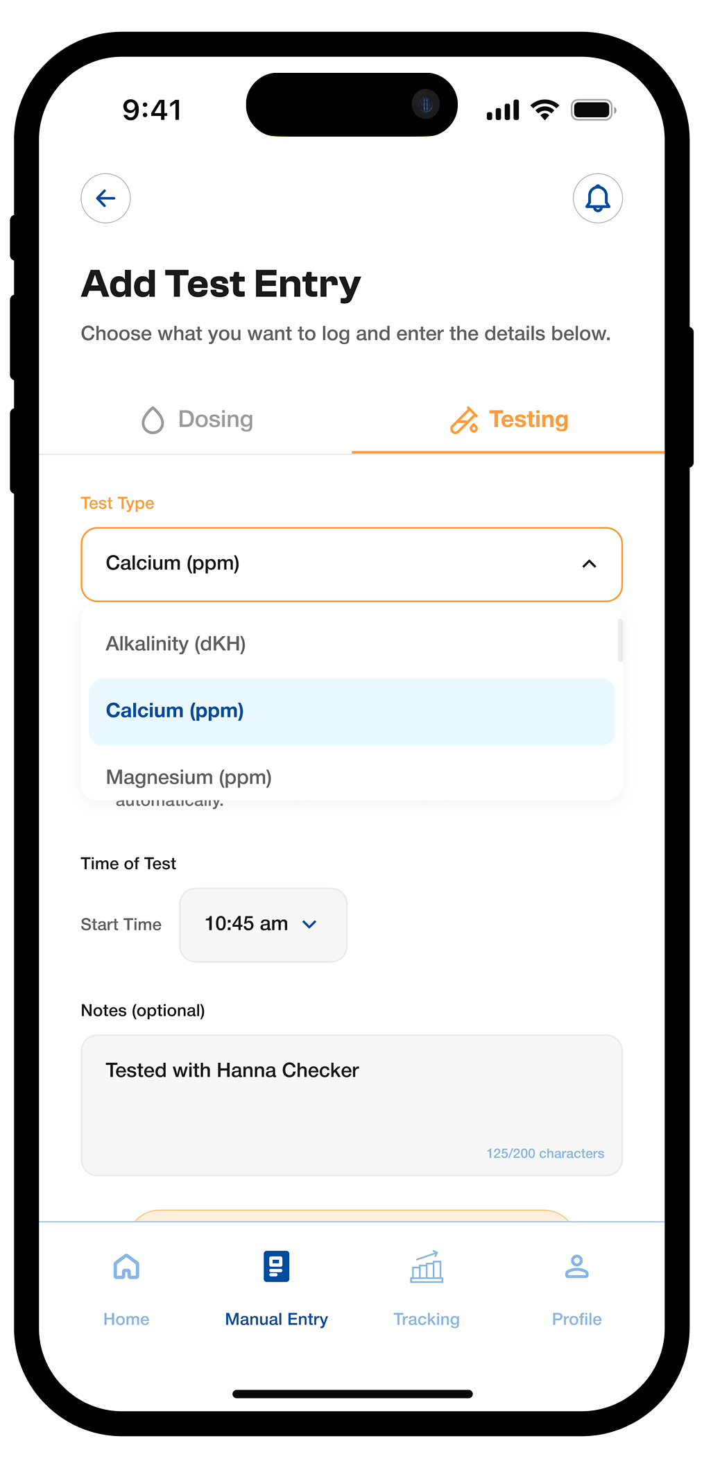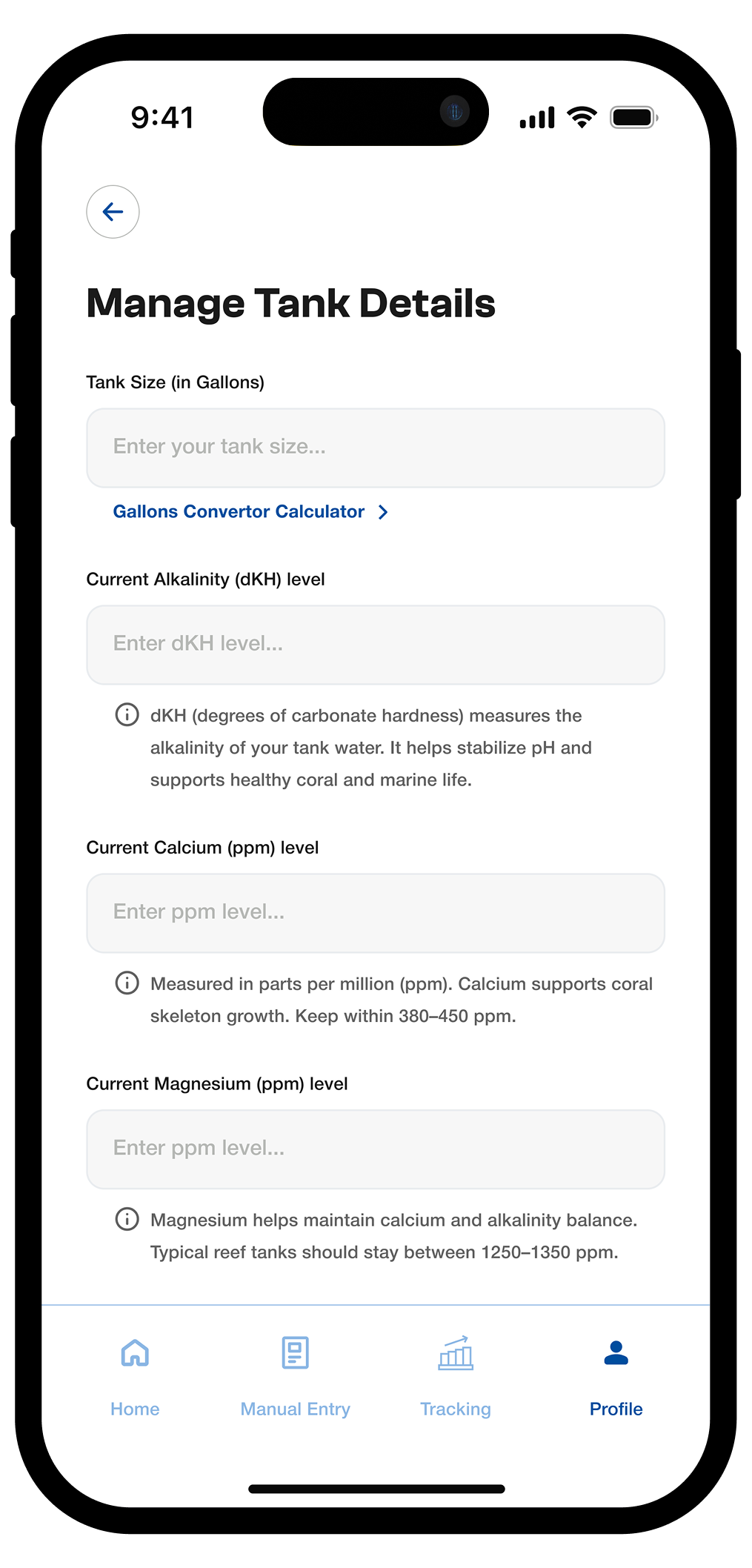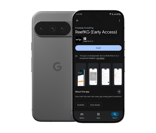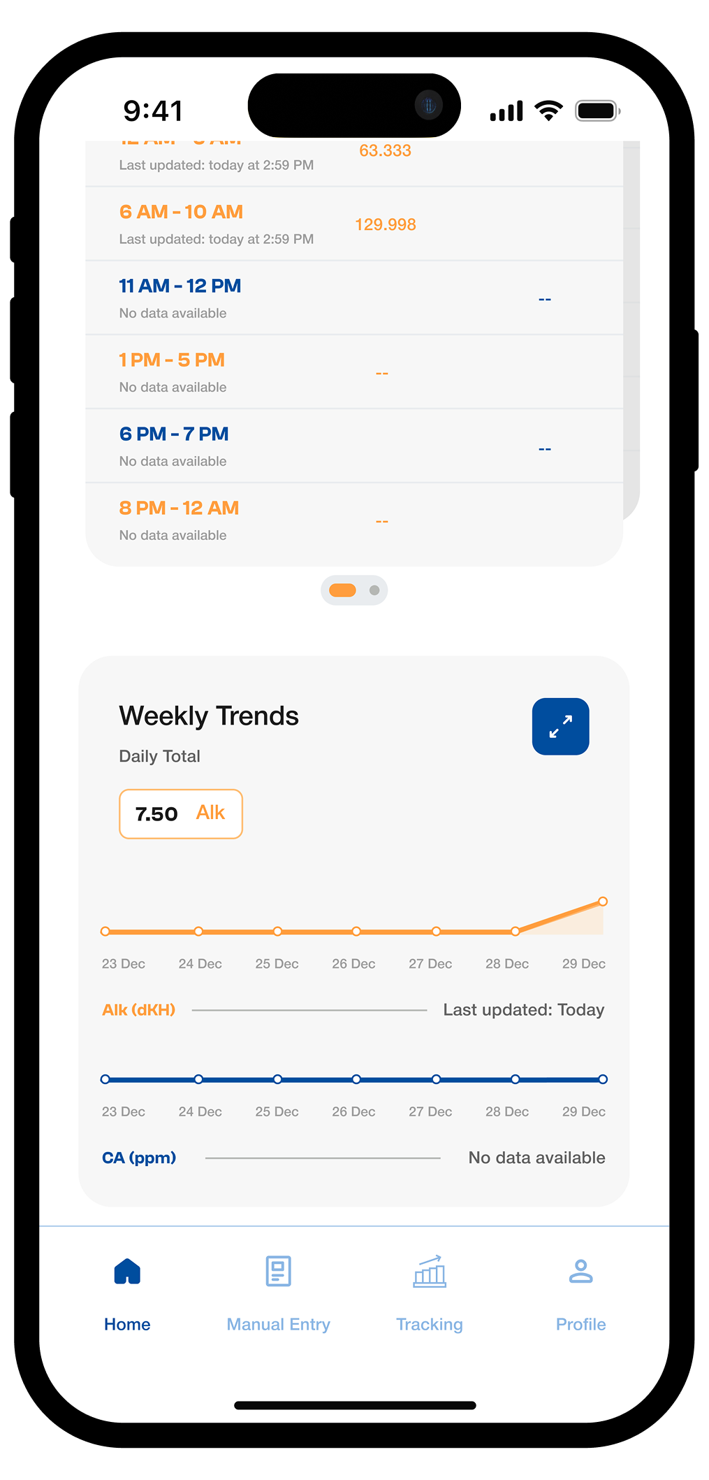 The Reef KG mobile app works as an aquarium maintenance app and reef tank parameters app in one place. Log tests, calculate doses, and receive reminders wherever you are.
