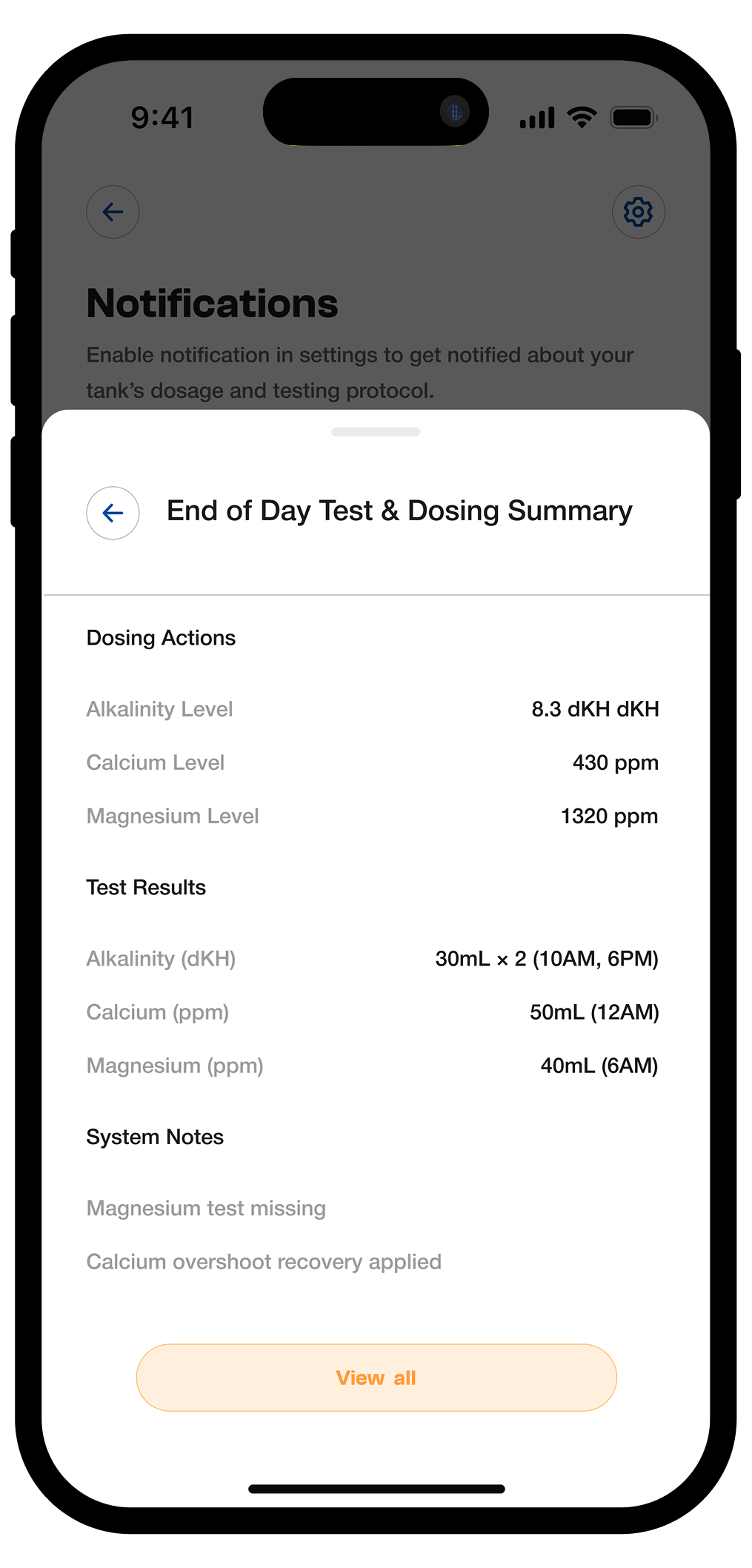 Instantly view pH, alkalinity, calcium, magnesium, and salinity.